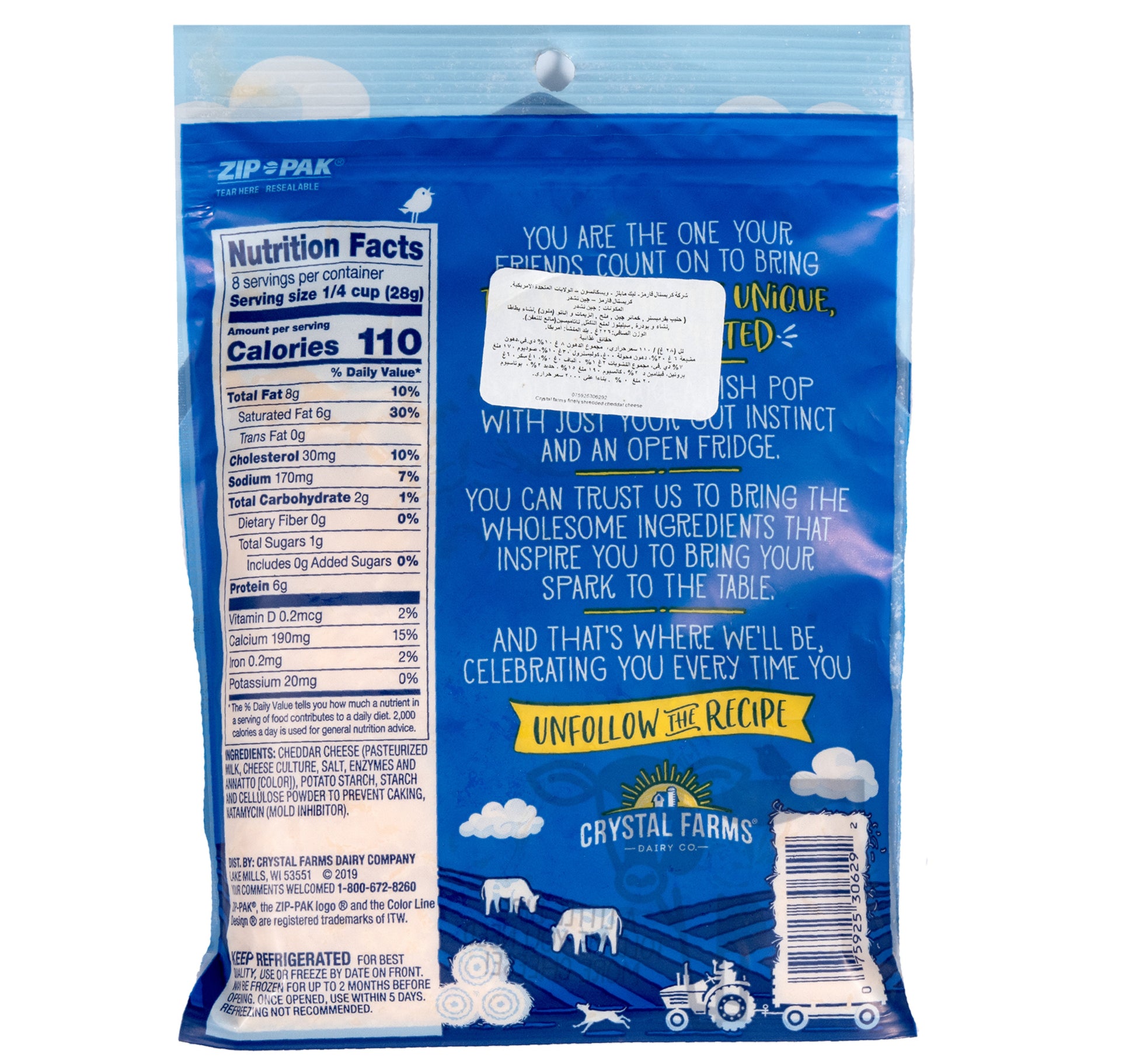 شركة كريستال فارمز للألبان، جبنة شيدر مبشورة ناعماً، 226 جم