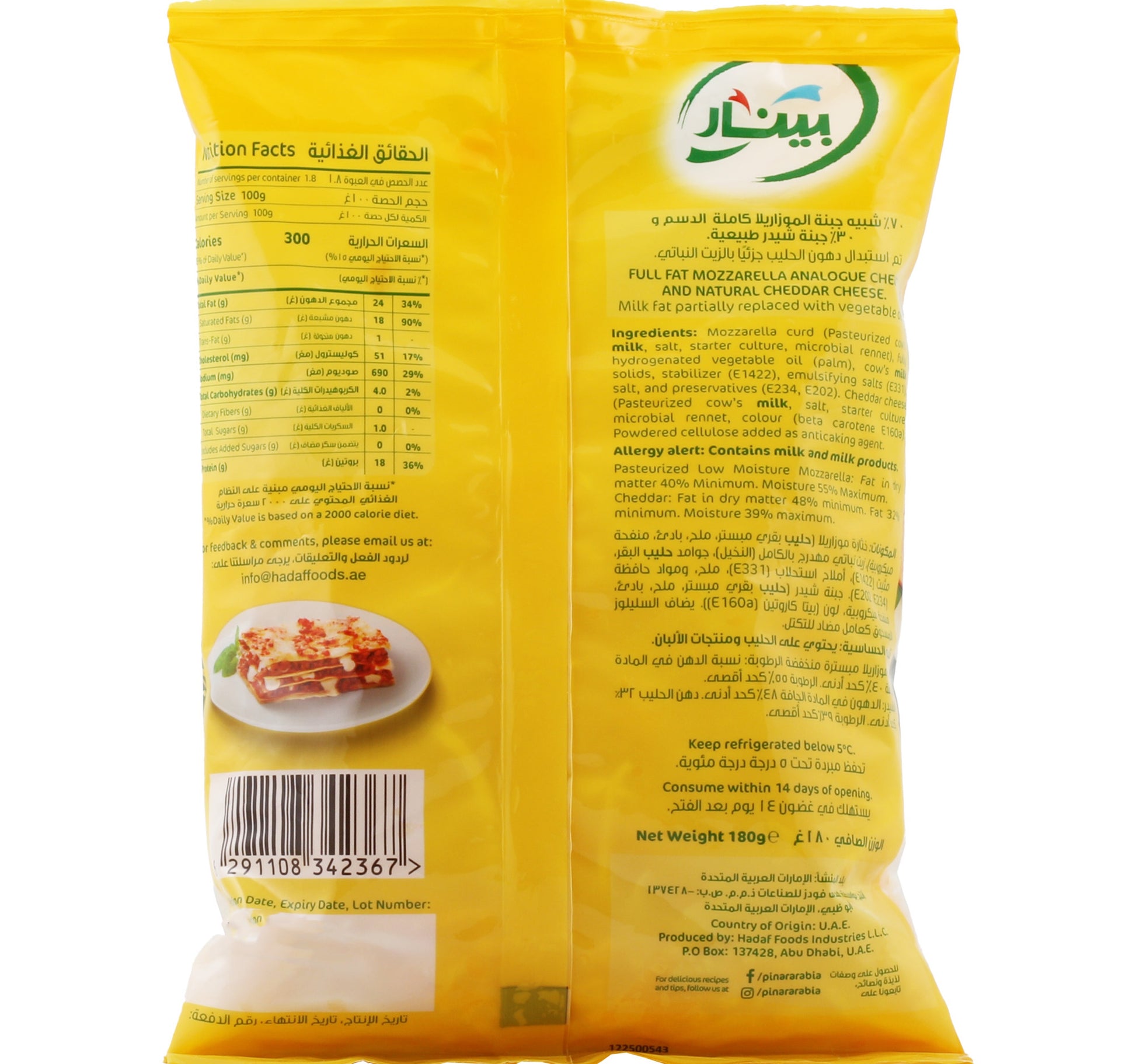 بينار جبنة موزاريلا و شيدر مبشورة 180 جم