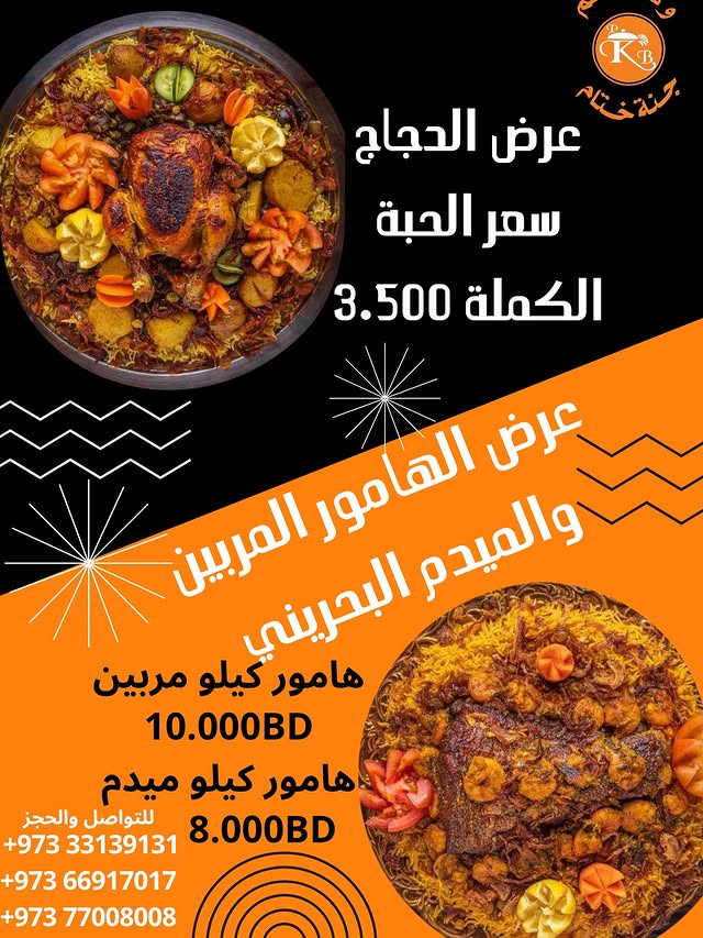 From our golden chicken machboos and flaky samboosa to our sweet, cardamom-scented halwa, every dish tells a story of our culture. We use locally sourced ingredients and time-honored techniques, ensuring each bite carries the warmth and richness of Bahrain’s culinary legacy.