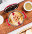 Popular delicious foul mudammas. topped of tahina, chickpeas, sumac, garlicky green chili, onion and olive oil. serves with freshly baked bread.